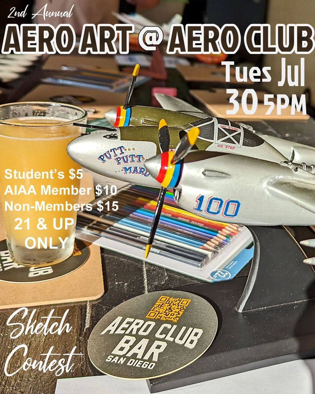 Assorted aircraft models will be displayed for you to draw and compete for prizes and a chance to have your aero-themed masterpiece displayed at San Diego’s famous Aero Club Bar.