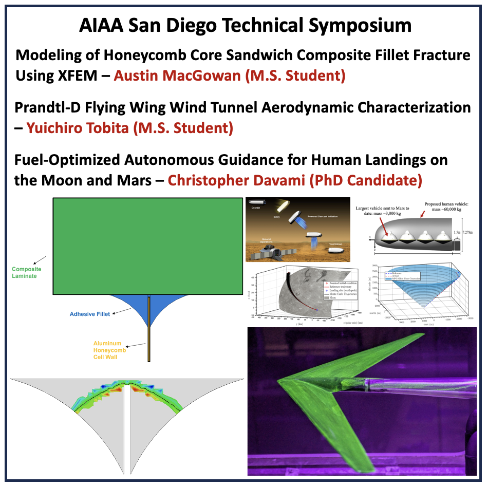 Description: This technical symposium highlights three cutting-edge graduate research projects from San Diego State University covering aerospace structures, experimental aerodynamics, and autonomous space guidance. Join AIAA members, industry professionals, and students for an engaging evening of presentations and discussion.